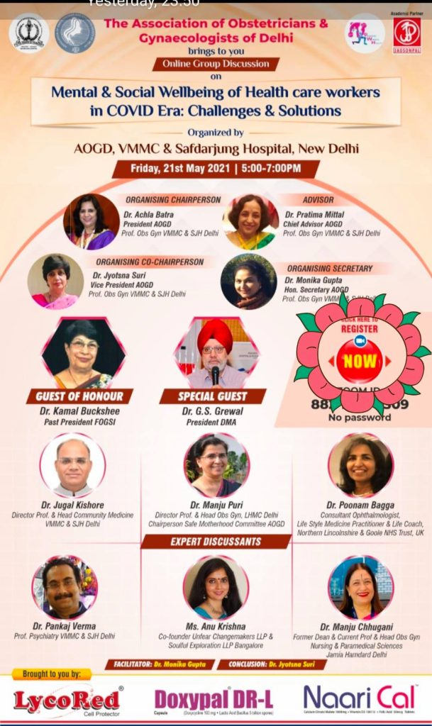 Wanting to serve the frontline health workers has always been a dream and I got live that dream when I was approached by a senior doctor dealing in Community Medicine in New Delhi to facilitate a session for doctors and nurses who were working non-stop shifts during the Pandemic. This program was organized by The Association of Obstetricians and Gynaecologists of Delhi.